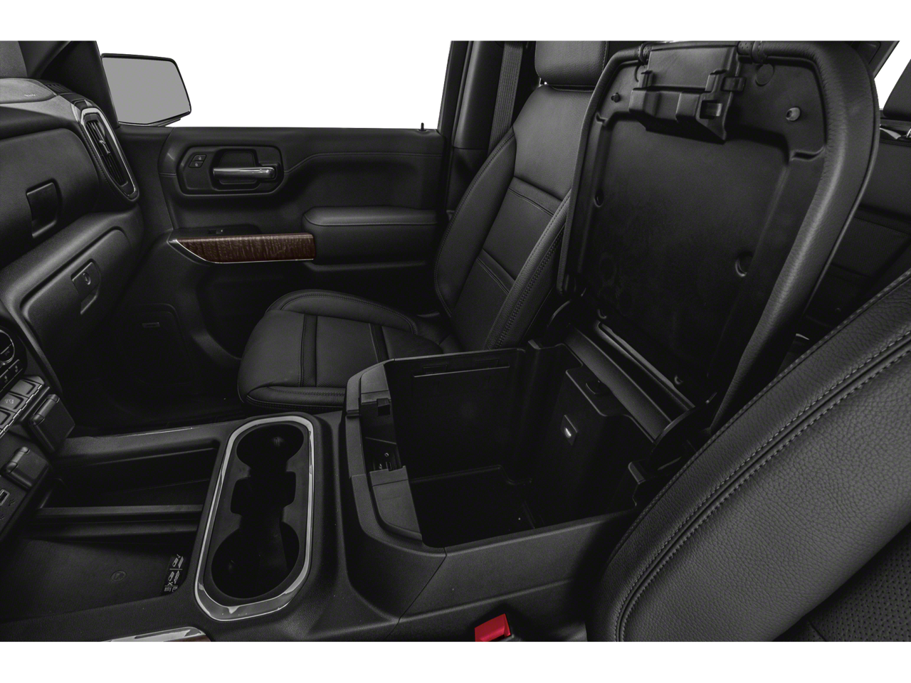 The pinnacle Denali trim outfits the Sierra with distinctive 22-inch bright machined aluminum wheels, all-season tires, and a bold chrome grille with signature LED lighting. Inside, you'll find premium perforated leather-appointed seating with heated and ventilated front rows, genuine open-pore wood trim, and a suede-like headliner. The spacious Crew Cab offers best-in-class rear legroom and innovative cargo solutions like the available MultiPro tailgate, along with dual-zone automatic climate control and a premium 8-speaker Bose premium audio system.