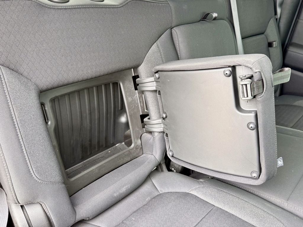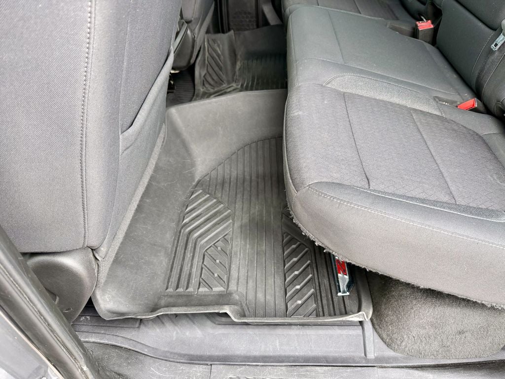 The purpose-built Trail Boss package outfits the Silverado with aggressive 18-inch high-gloss black wheels wrapped in all-terrain tires, a 2-inch factory lift, and unique red recovery hooks. Inside, you'll find durable cloth seating surfaces with trail-boss embroidery, a leather-wrapped steering wheel, and all-weather floor liners. The versatile Crew Cab offers ample room for passengers and gear, along with dual-zone automatic climate control and an 8-inch touchscreen infotainment system for work and adventure.
